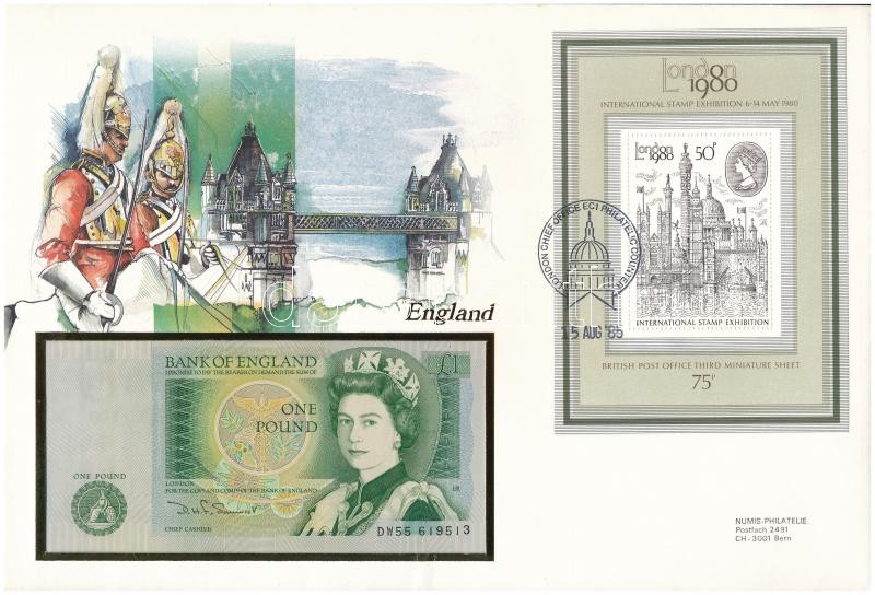Great Britain/England 1981-1984. 1 Pound in envelope with stamp and cancellation C:UNC