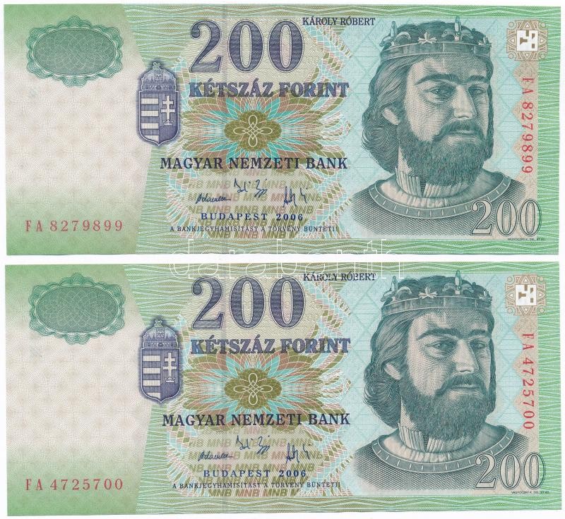 2006. 200Ft "FA" (2x) T:I https://www.darabanth.com/de/361-Fernauktion/361.0/Numismatik/Ungarische-Banknoten~2000007/2006-200Ft-FA-2x-TI~II2084916