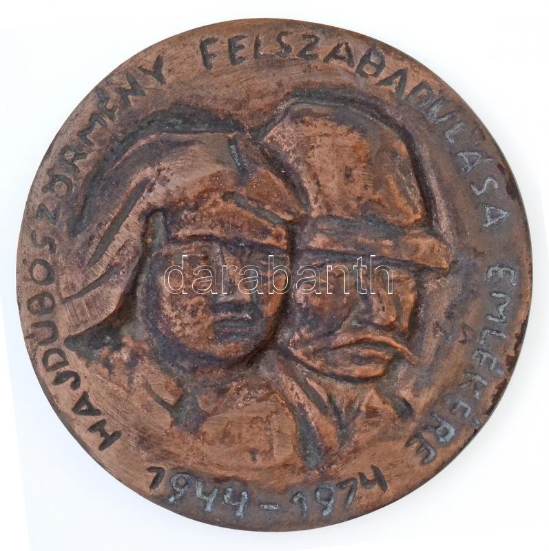 1974. "Hajdúböszörmény felszabadulása emlékére 1944-1974" Br... https://www.darabanth.com/de/361-Fernauktion/361.0/Numismatik/Ungarische-Gedenkmunzen-Plaketten~2000009/1974-Hajduboszormeny-felszabadulasa-emlekere-1944-1974-Br-plakett-disztokban-87mm-T2~II2060571