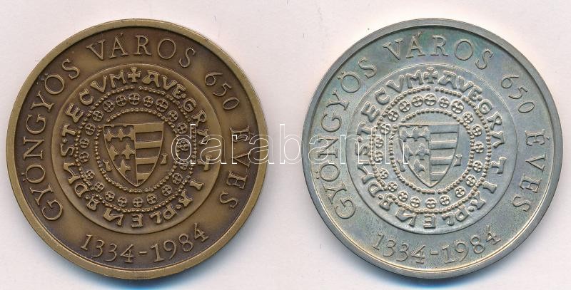 Bognár György (1944-) 1984. "MÉE Gyöngyös / 650 éves Gyöngyös - Róbert Károly" Br és Ag emlékérem pár (30,72g/0.640/42,5mm) T:1 Adamo GS3