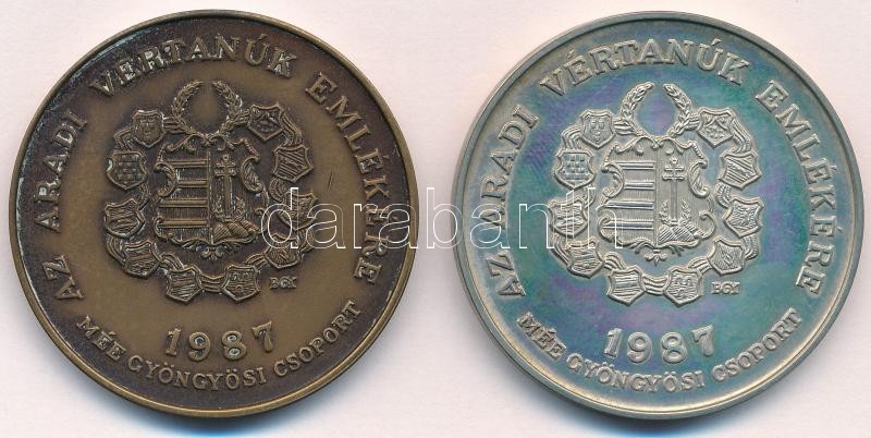 Bognár György (1944-) 1987. "MÉE Gyöngyösi Csoport - Aradi Vértanúk / Nagysándor József" Br és Ag emlékérem pár (34,61g/0.640/42,5mm) T:1 Adamo GS5
