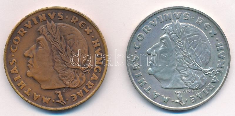 Csúcs Ferenc (1905-1999) 1974. "MÉE Budapest - Mátyás király - Mathias Corvinus Rex Hungarie / Buda" Ag és Br emlékérem pár (24,96g/0.800/42,5mm) T:1 kis patina