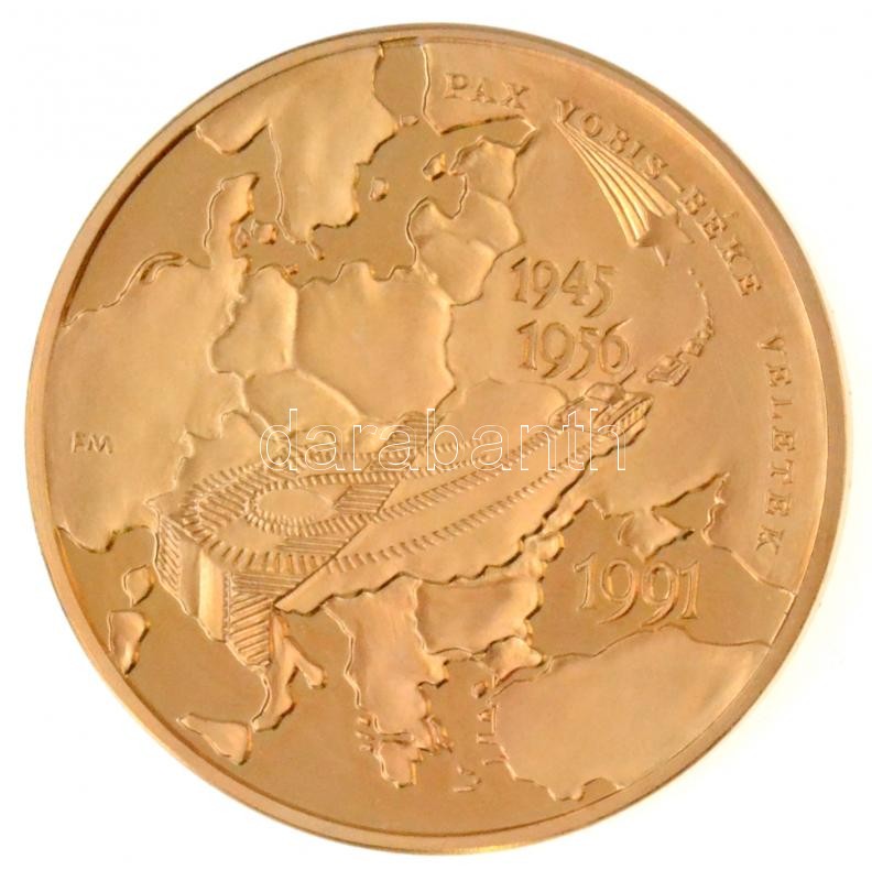 Fritz Mihály (1947-) 1991. "Pax Vobis - Béke veletek 1945-1956.&q... https://www.darabanth.com/de/361-Fernauktion/361.0/Numismatik/Ungarische-Gedenkmunzen-Plaketten~2000009/Fritz-Mihaly-1947-1991-Pax-Vobis-Beke-veletek-1945-1956-aranyozott-emlekerem-42-5mm-T~II2081730