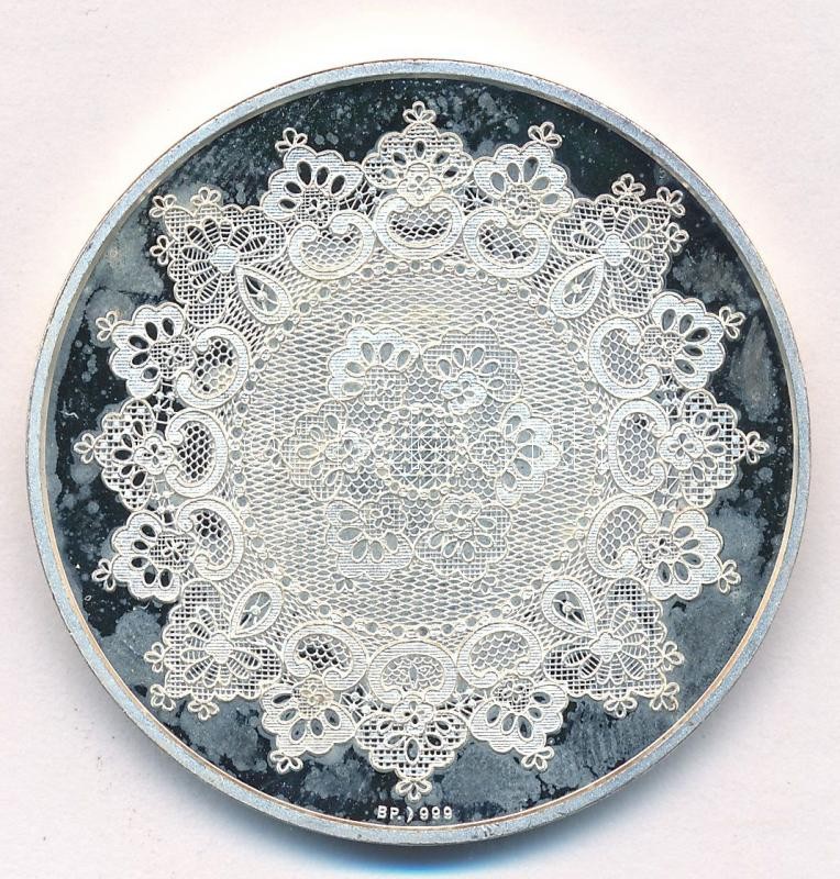 Kósa István (1953-) 2002. "Száz éves a halasi csipke - Kiskunhala... https://www.darabanth.com/de/361-Fernauktion/361.0/Numismatik/Ungarische-Gedenkmunzen-Plaketten~2000009/Kosa-Istvan-1953-2002-Szaz-eves-a-halasi-csipke-Kiskunhalas-Ag-emlekerem-31-29g0999~II2081054