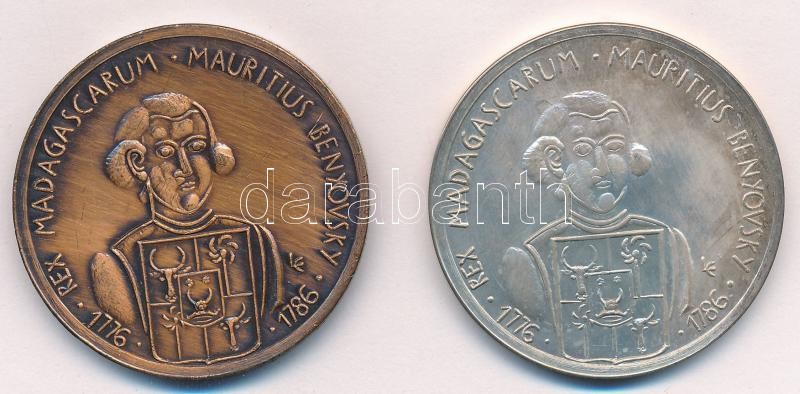 Ligeti Erika (1934-2004) 1986. "REX MADAGASCARUM MAURITIUS BENYOVSKY 1776-1786 / MÉE 1986" Benyovszky Móric Br és Ag emlékérem pár (35,30g/0.800/42,5mm) T:1 Adamo BP19