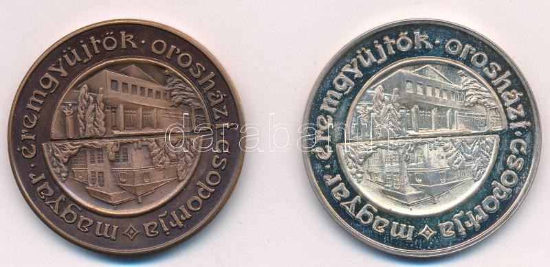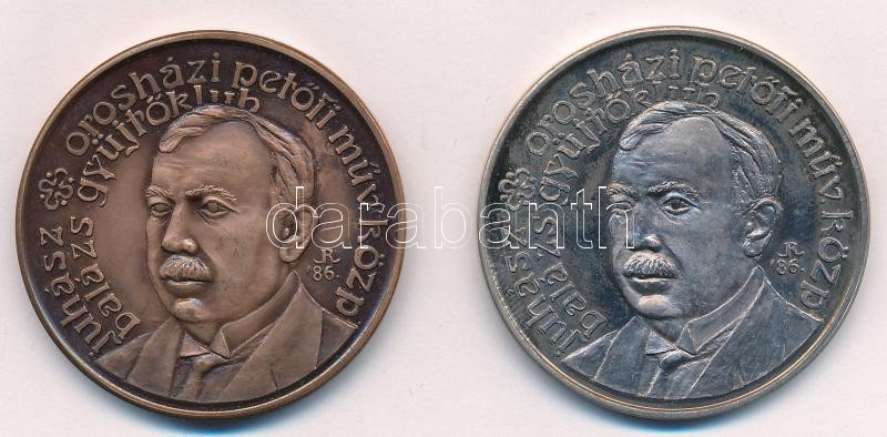 Rajki László (1939-) 1986. "MÉE Orosházi csoportja / Orosházi Petőfi Műv. Közp. Juhász Balázs Gyűjtőklub" Br és Ag emlékérem pár (35,6g/0.835/42,5mm) T:1 Adamo OH1