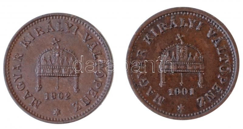 1901-1902KB 1f Br (2x) T:1-,2 https://www.darabanth.com/de/361-Fernauktion/361.0/Numismatik/Ungarische-Munzen-und-Munzen-mit-ungarischem-Munzzeichen~2000008/1901-1902KB-1f-Br-2x-T1-2~II2080596