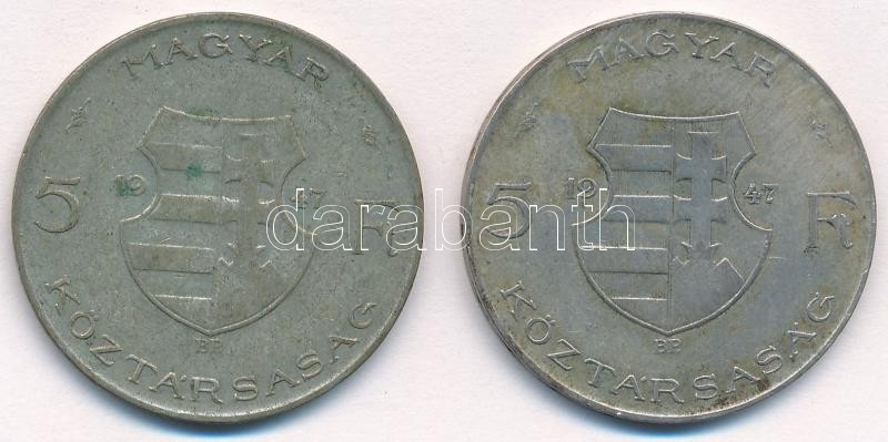 Beschreibung: 1947. 5Ft Ag "Kossuth" (2x) T:2-,3 patina