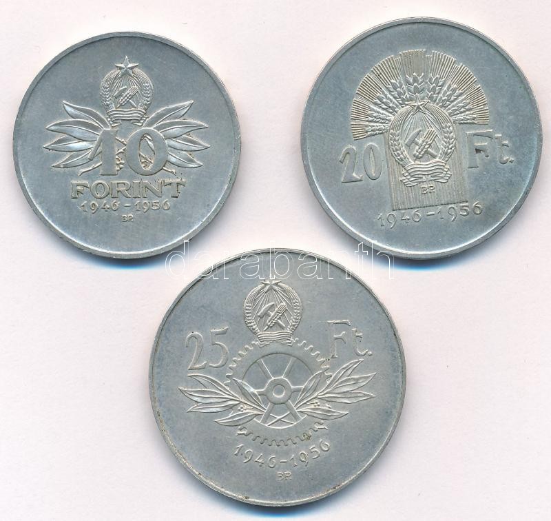 Beschreibung: 1956. 10Ft + 20Ft + 25Ft Ag "10 éves a Forint" T:1-