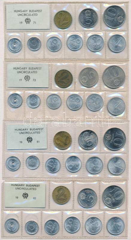 Beschreibung: 1971. 2f-10Ft (9xklf) + 1973. 2f-10Ft (9xklf) + 1981. 2f-10Ft (9xklf) + 1982. 2f-10Ft (9xklf) mindegyik forgalmi sor lezárt fóliatokban T:1