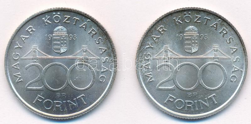 Beschreibung: 1993. 200Ft Ag "MNB" (2x) T:1-