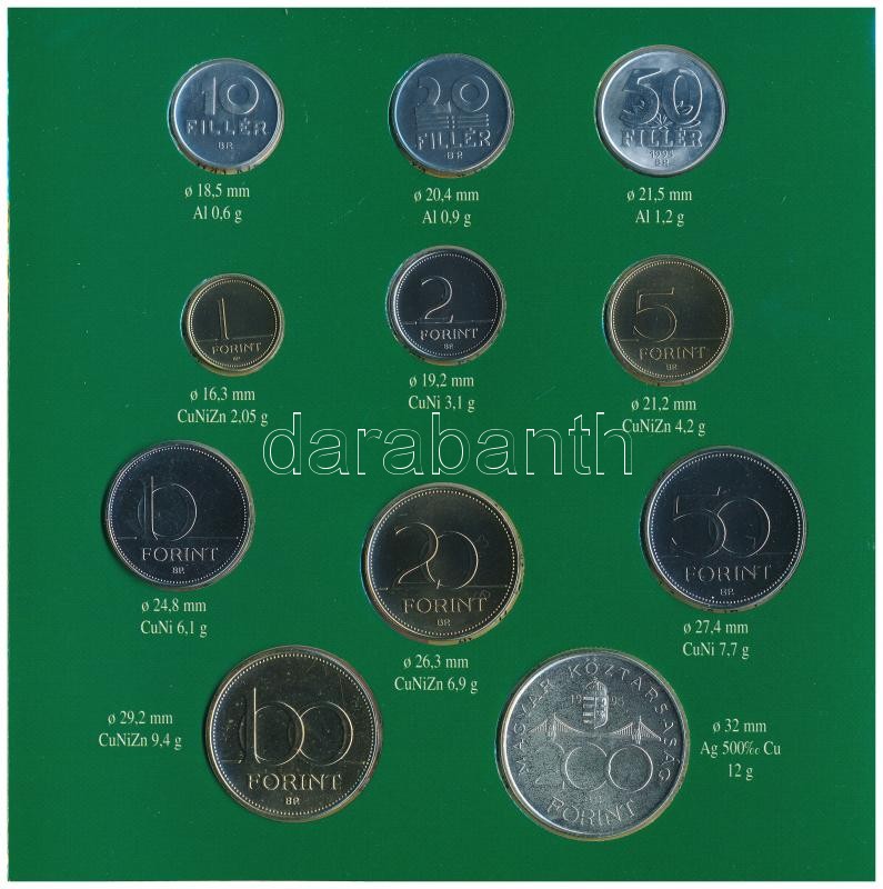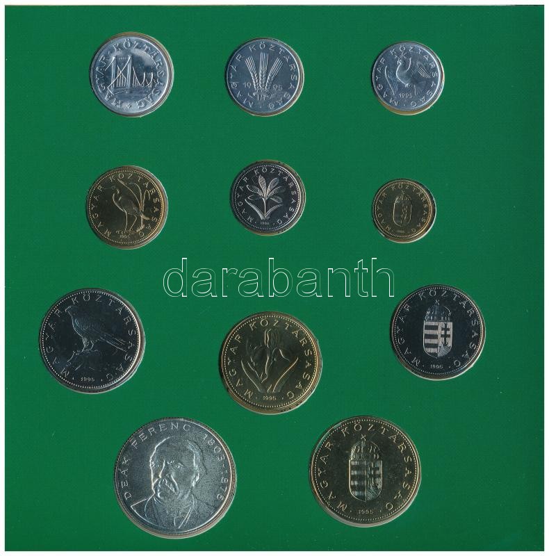 1995. 10f-200Ft (11xklf) forgalmi sor dísztokban, benne 200Ft Ag "... https://www.darabanth.com/de/361-Fernauktion/361.0/Numismatik/Ungarische-Munzen-und-Munzen-mit-ungarischem-Munzzeichen~2000008/1995-10f-200Ft-11xklf-forgalmi-sor-disztokban-benne-200Ft-Ag-Deak-Magyarorszag-penzermC3~II2055191