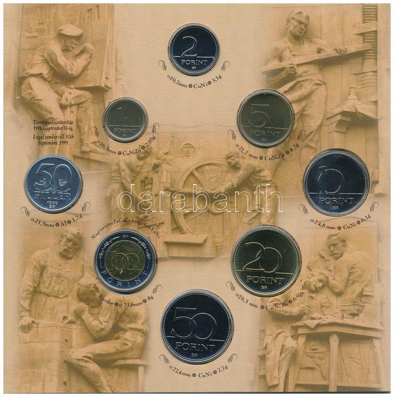 1999. 50f-100Ft (8xklf) forgalmi sor dísztokban T:BU Adamo FO32 https://www.darabanth.com/de/361-Fernauktion/361.0/Numismatik/Ungarische-Munzen-und-Munzen-mit-ungarischem-Munzzeichen~2000008/1999-50f-100Ft-8xklf-forgalmi-sor-disztokban-TBU-Adamo-FO32~II2058685