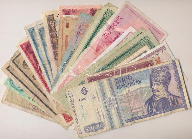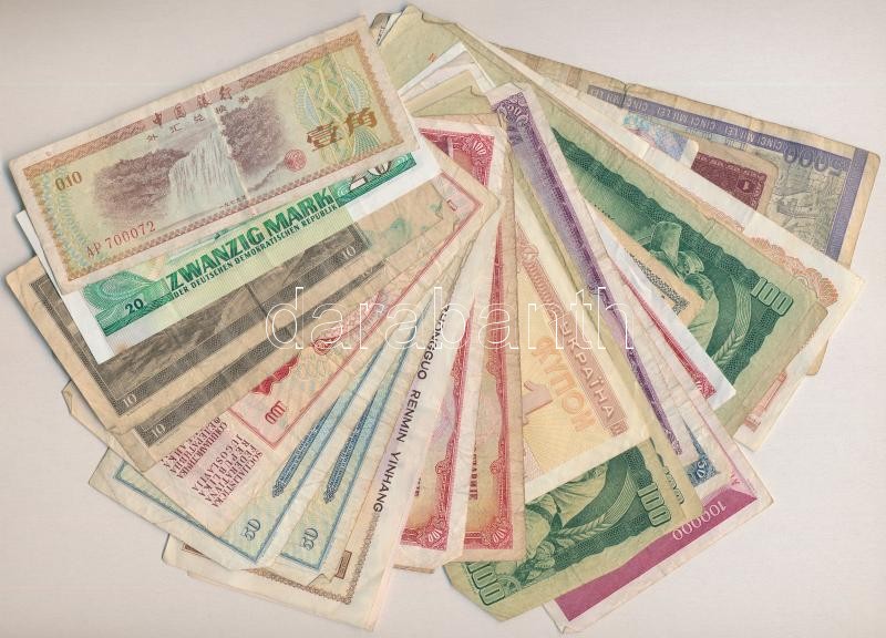 30db-os vegyes külföldi bankjegy tétel, közte Csehszlovákia, Jugoszlávia, Kína, Románia T:III,III-