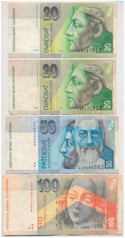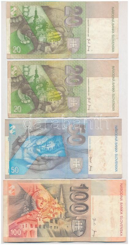 Slovakia 2001. 100 Korun + 2002. 50 Korun + 2004. 20 Korun (2x) C:F
