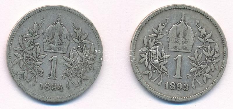 Beschreibung: Ausztria 1893-1894. 1K Ag "Ferenc József" (2x) T:2-,3