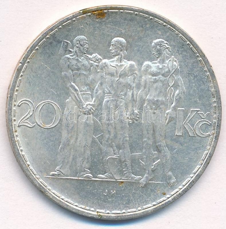 Csehszlovákia 1933. 20K Ag "Ipar, mezőgazdaság, üzlet" T:1,1- Czechoslovakia 1933. 20 Korun Ag "Industry, Agriculture, Business" C:UNC, AU Krause KM#17