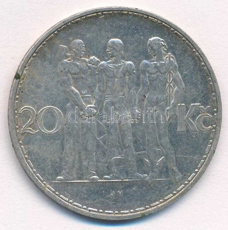 Csehszlovákia 1933. 20K Ag "Ipar, mezőgazdaság, üzlet" T:1- kis patina Czechoslovakia 1933. 20 Korun Ag "Industry, Agriculture, Business" C:AU small patina Krause KM#17