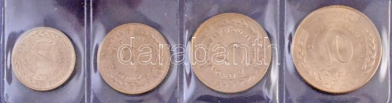 Jugoszlávia 1970-1976. 1D-10D Cu-Ni-Zn (4xklf) forgalmi sor műbőr tokban tanúsítvánnyal T:1,1- Yugoslavia 1970-1976. 1 Dinar - 10 Dinars Cu-Ni-Zn (4xdiff) coin set in faux leather case with certificate C:UNC, AU