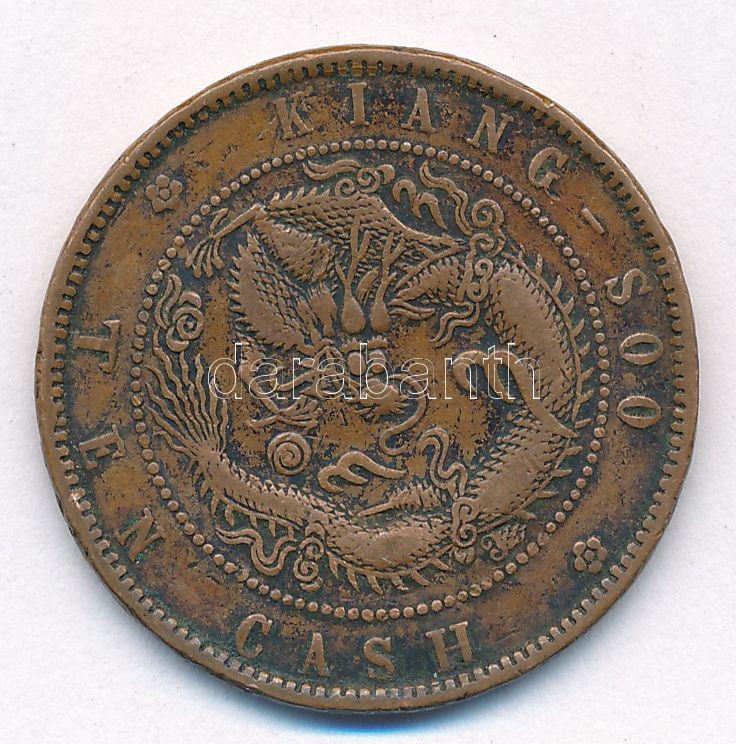 China / Jiangsu ~1902. 10 C... https://www.darabanth.com/de/361-Fernauktion/361.0/Numismatik/Weltweit-Munzen~2000014/Kina-Csiangszu-7E1902-10c-Cu-T2-2-ph-China-Jiangsu-7E1902-10-Cash-Cu-CXF-VF-edge-error~II2084736