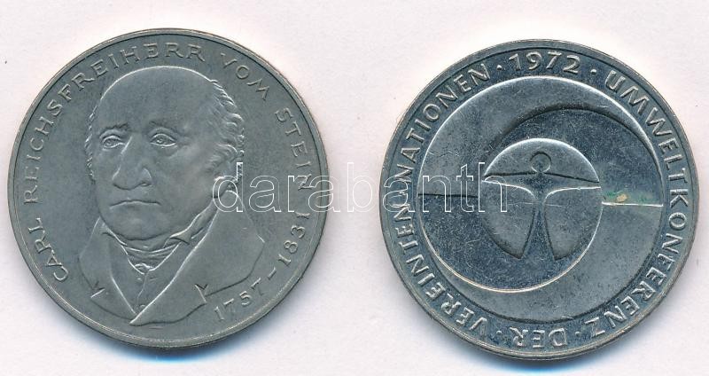 Beschreibung: NSZK 1981G 5M Cu-Ni "Carl von Stein halálának 150. évfordulója" + 1982F 5M Cu-Ni "ENSZ klímaügyi konferencia 10. évfordulója" T:2
