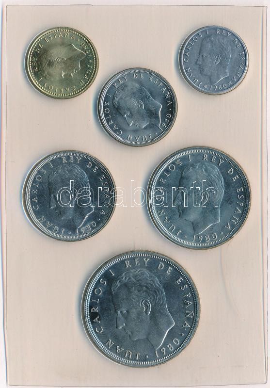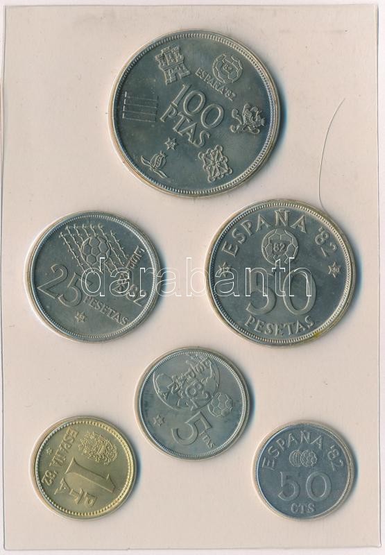 Spanyolország 1982. 1P-100P (6xklf) forgalmi sor műbőr tokban tanúsítvánnyal T:1- Spain 1982. 1 Peseta - 100 Pesetas (6xdiff) coin set in faux leather case with certificate C:AU