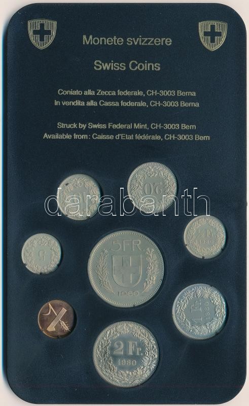 Svájc 1980. 1r-5Fr (8xklf) forgalmi szett műanyag tokban T:1 Switzerland 1980. 1 Rappen - 5 Francs (8xdiff) coin set in plastic case C:UNC