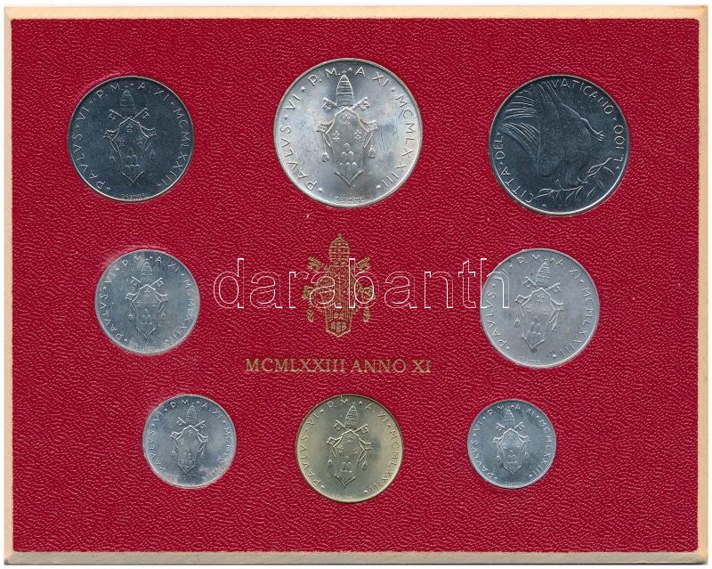 Vatikán 1973. 1L - 500L "VI. Pál pápa" (8xklf) forgalmi szet... https://www.darabanth.com/de/361-Fernauktion/361.0/Numismatik/Weltweit-Munzen~2000014/Vatikan-1973-1L-500L-VI-Pal-papa-8xklf-forgalmi-szett-T1-2-kis-patina--Vatican-1973-1-~II2050306