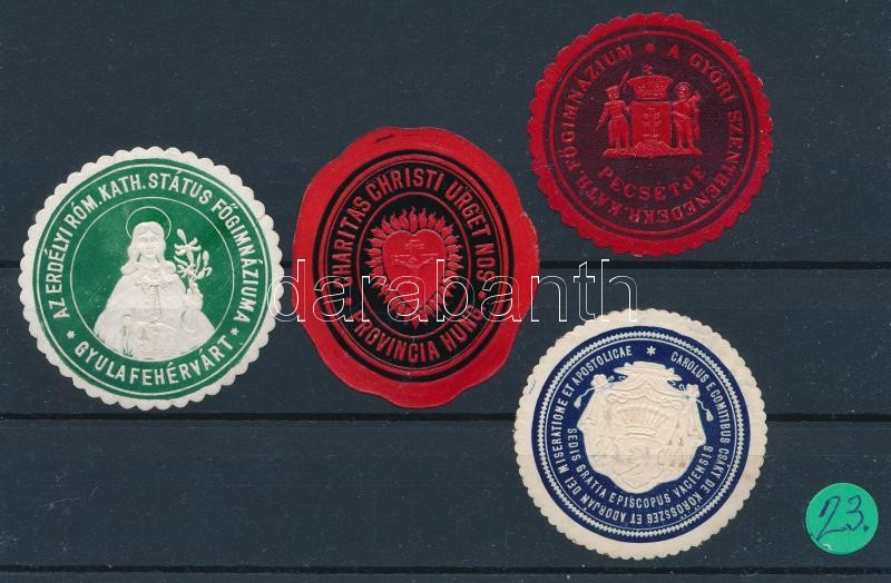 Vallási téma, 4 klf pecsétbélyeg, benne Gyulafehérvár, Charitas, Győr ... https://www.darabanth.com/de/361-Fernauktion/361.0/Philatelie-und-Postgeschichte-Ungarn/Paraphilatelie~500018/Vallasi-tema-4-klf-pecsetbelyeg-benne-Gyulafehervar-Charitas-Gyor-R~II1998390