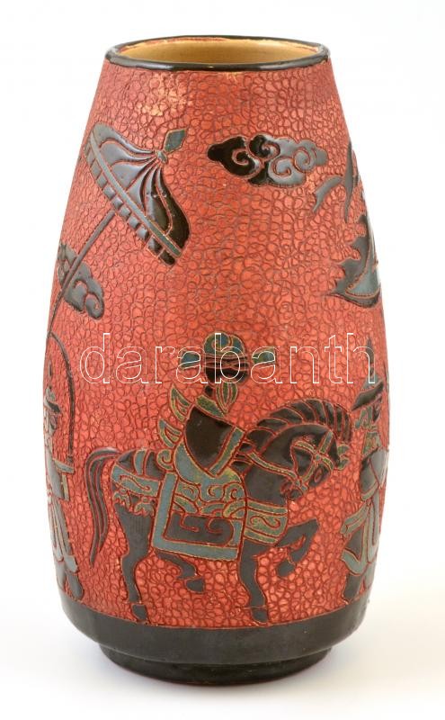 Beschreibung: Jelzett kínai váza, mázas kerámia, apró hibákkal, m: 23 cm