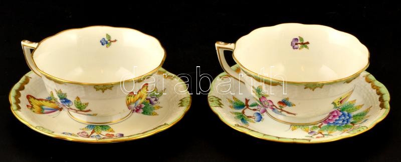 Beschreibung: Herendi Viktória porcelán teás csészék aljjal. 2 db Kézzel festett, jelzett, hibátlan.