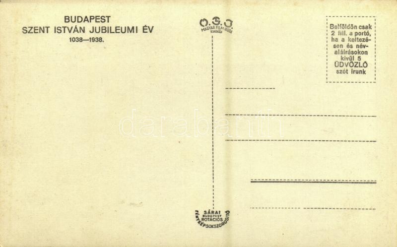 1938 Budapest V. Országház, Szent István Jubileumi Év https://www.darabanth.com/de/362-Fernauktion/362.0/Ansichtskarten/Ungarn~1000005/1938-Budapest-V-Orszaghaz-Szent-Istvan-Jubileumi-Ev~II2088557