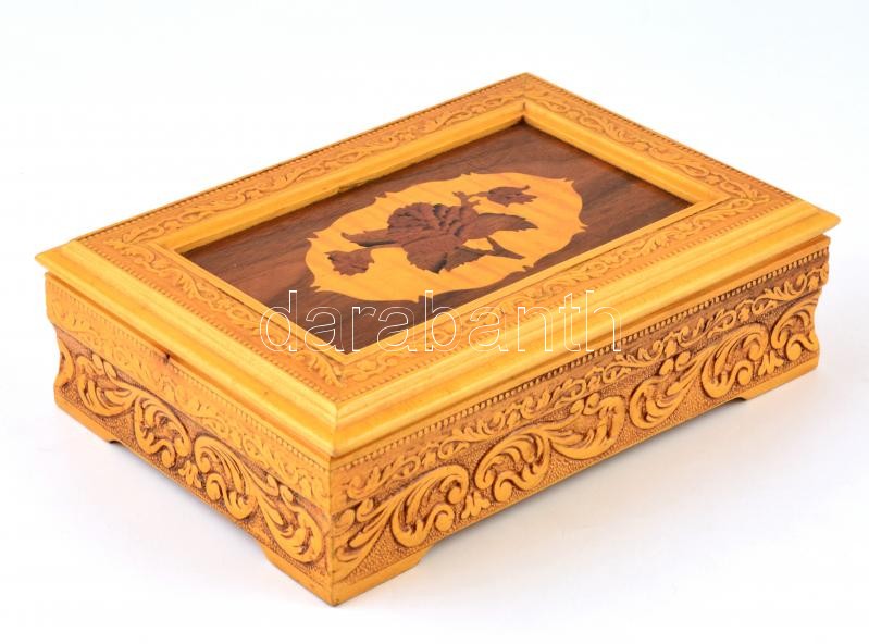 Faragott, lakkozott, intarziás fa ládika, bársony béléssel, szép állap... https://www.darabanth.com/de/362-Fernauktion/362.0/Kunst-Dokumente-andere-Sammelgebiete/Flohmarkt~500011/Faragott-lakkozott-intarzias-fa-ladika-barsony-belessel-szep-allapotban-25x17-5x7-5-cm~II2090890