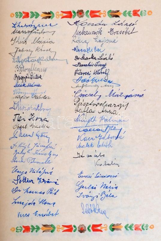 Beschreibung: 1948 Magyar Országos Szövetkezeti Központ egyedi díszalbuma a vezérigazgató részére, minden munkatárs aláírásával