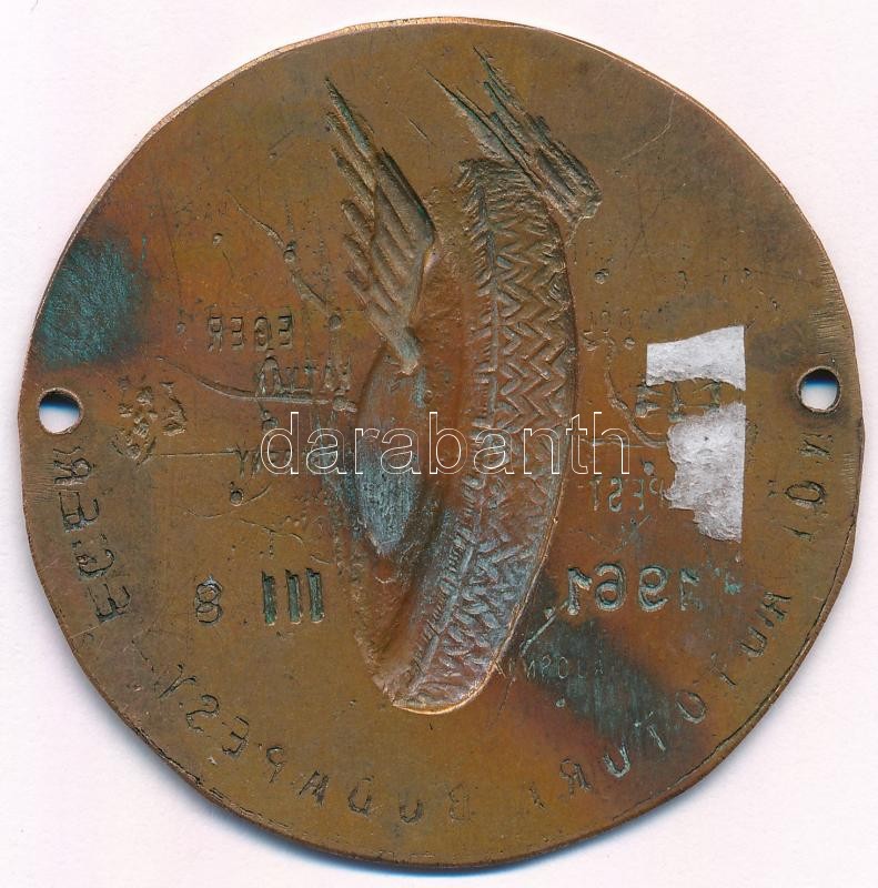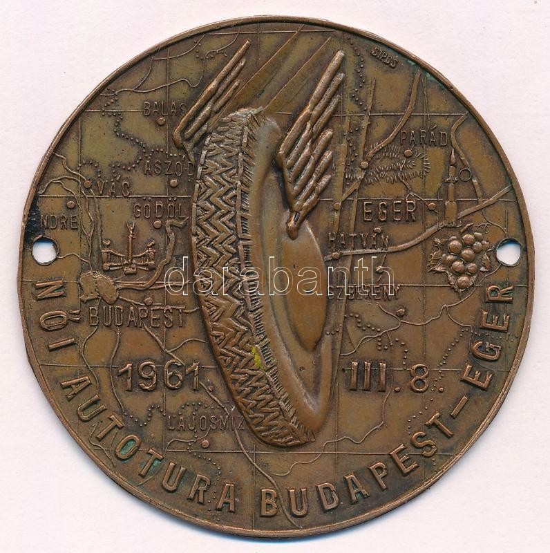 1961. "Női Autótúra Budapest-Eger 1961. III. 8." Br autójelvény (60mm)... https://www.darabanth.com/de/362-Fernauktion/362.0/Numismatik/Sportpreise-und-Sportgedenkmedaillen~1500010/1961-Noi-Autotura-Budapest-Eger-1961-III-8-Br-autojelveny-60mm-T2-patina~II2087439