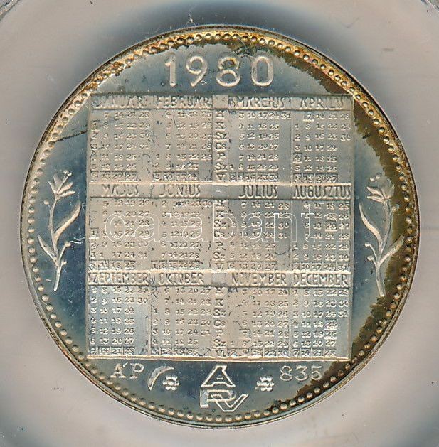 1980. Jelzett ezüst naptárérem "Állami pénzverő" feliratú műanyag tokb... https://www.darabanth.com/de/362-Fernauktion/362.0/Numismatik/Ungarische-Gedenkmunzen-Plaketten~1500009/1980-Jelzett-ezust-naptarerem-Allami-penzvero-feliratu-muanyag-tokban-083524mm-T1-P~II2091393