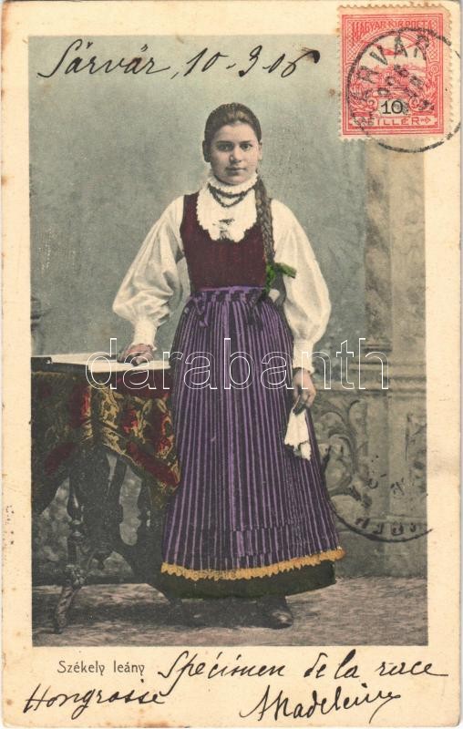 1906 Székely leány, erdélyi folklór / Transylvanian folklore, Székely ... https://www.darabanth.com/de/363-Fernauktion/363.0/Ansichtskarten/Folklore~1500067/1906-Szekely-leany-erdelyi-folklor-Transylvanian-folklore-Szekely-girl-in-traditional-costu~II2097533