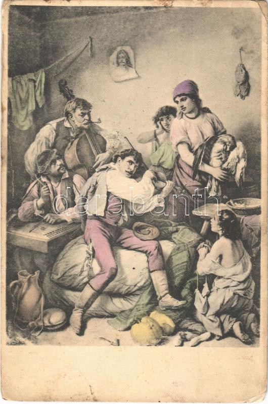 Mulatozó cigány zenészek / Gypsy musicians, folklore (EK) https://www.darabanth.com/de/363-Fernauktion/363.0/Ansichtskarten/Folklore~1500067/Mulatozo-cigany-zeneszek-Gypsy-musicians-folklore-EK~II2098469
