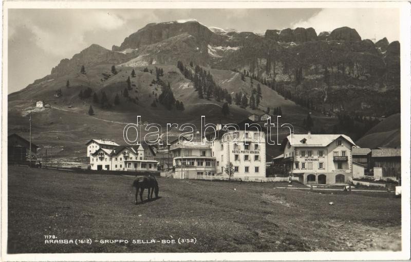 Arabba (Südtirol), Gruppo Sella, Albergo Pordoi, Hotel Posta Arabba, D... https://www.darabanth.com/de/363-Fernauktion/363.0/Ansichtskarten/Italien~1500047/Arabba-Sudtirol-Gruppo-Sella-Albergo-Pordoi-Hotel-Posta-Arabba-Dependance-Sella-Group-hote~II2098437
