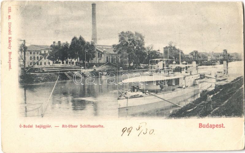 1899 SMS Szamos monitor Budapesten az óbudai hajógyárban. Dunai Flottilla. Divald Károly 133. / Donau-Flottille / Hungarian Danube Fleet river guard ship in the ship factory in Óbuda (EB)