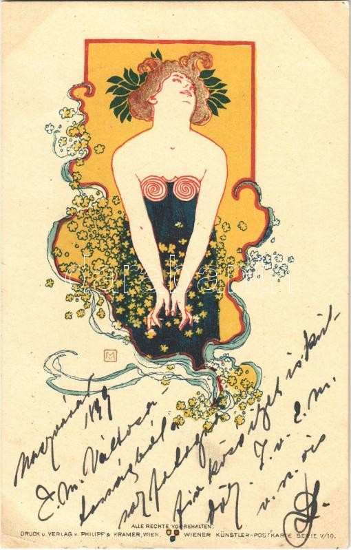Art Nouveau lady. Philipp & Kramer Wiener Künstler-Postkarte Serie... https://www.darabanth.com/de/363-Fernauktion/363.0/Ansichtskarten/Kunstlerkarten~1500085/Art-Nouveau-lady-Philipp-Kramer-Wiener-Kunstler-Postkarte-Serie-V10-s-Koloman-Moser~II2100974