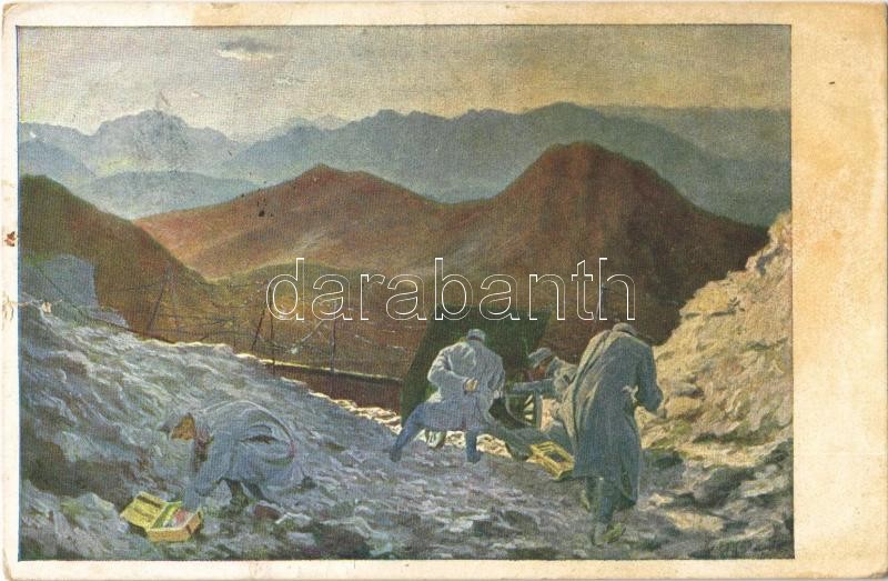Beschreibung: 1917 Artillerie im Hochgebirge. Rotes Kreuz Kriegshilfsbüro Nr. 505. / WWI Austro-Hungarian K.u.K. military, mountain artillery (szakadás / tear)