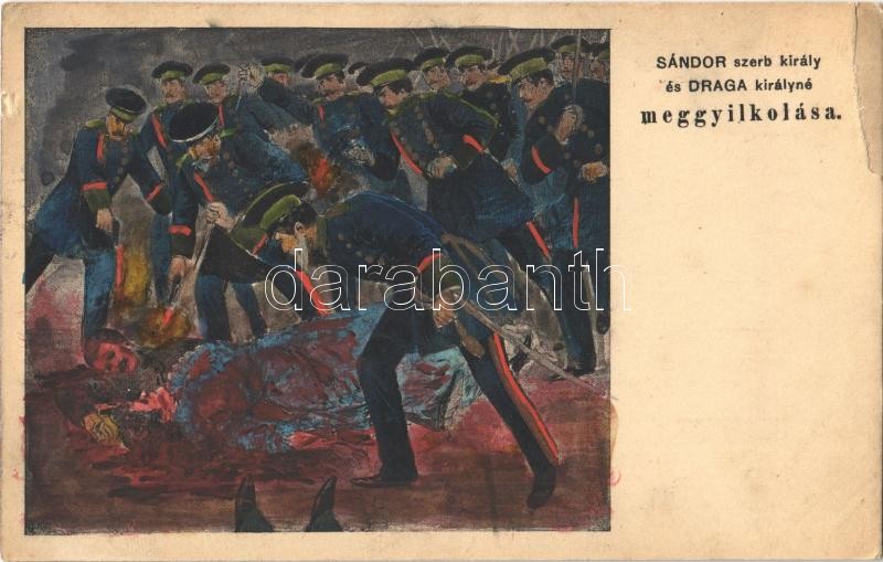 Sándor szerb király és Draga királyné meggyilkolása 1903-ban oroszbarát szerb tisztek által / Assassination of Alexander I (Obrenovic) of Serbia and his wife, Draga Masin by Russophile Serbian officers (szakadások / tears)