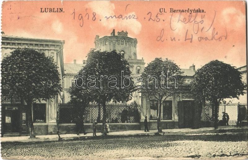 1918 Lublin, Ul. Bernardynska / street, shops + "K.U.K. BAHNHOFKO... https://www.darabanth.com/de/363-Fernauktion/363.0/Ansichtskarten/Polen~1500038/1918-Lublin-Ul-Bernardynska-street-shops-plus-KUK-BAHNHOFKOMMANDO-LUBLIN-fa~II2097435