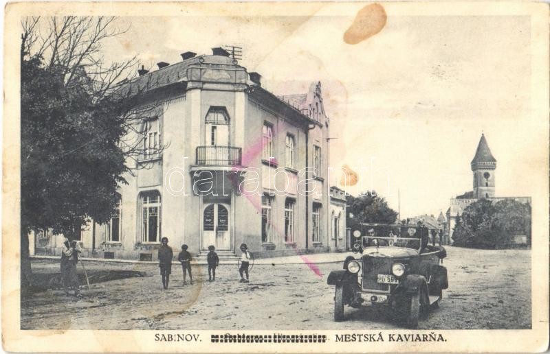 1930 Kisszeben, Zeben, Sabinov; Mestská kaviarna / kávéház, automobil,... https://www.darabanth.com/de/363-Fernauktion/363.0/Ansichtskarten/Slowakei~1500007/1930-Kisszeben-Zeben-Sabinov-Mestska-kaviarna-kavehaz-automobil-templom-Gustav-Stehr-kia~II2093935