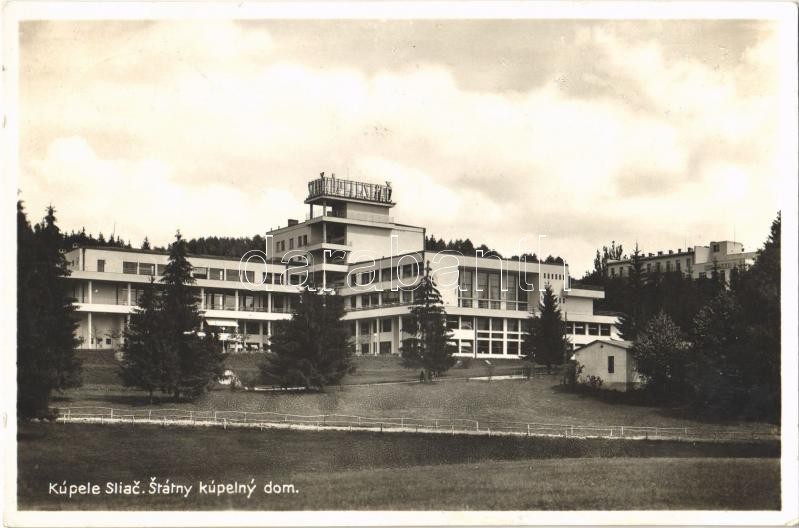 1941 Szliácsfürdő, Kúpele Sliac; szálló / Státny kúpelny dom / hotel https://www.darabanth.com/de/363-Fernauktion/363.0/Ansichtskarten/Slowakei~1500007/1941-Szliacsfurdo-Kupele-Sliac-szallo-Statny-kupelny-dom-hotel~II2095014