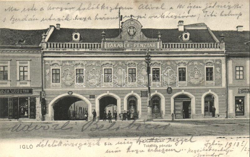 Igló, Iglau, Spisská Nová Ves; Takarékpénztár, Jakabin Alajos üzlete. ... https://www.darabanth.com/de/363-Fernauktion/363.0/Ansichtskarten/Slowakei~1500007/Iglo-Iglau-Spisska-Nova-Ves-Takarekpenztar-Jakabin-Alajos-uzlete-DTC-L-26481-sav~II1481519