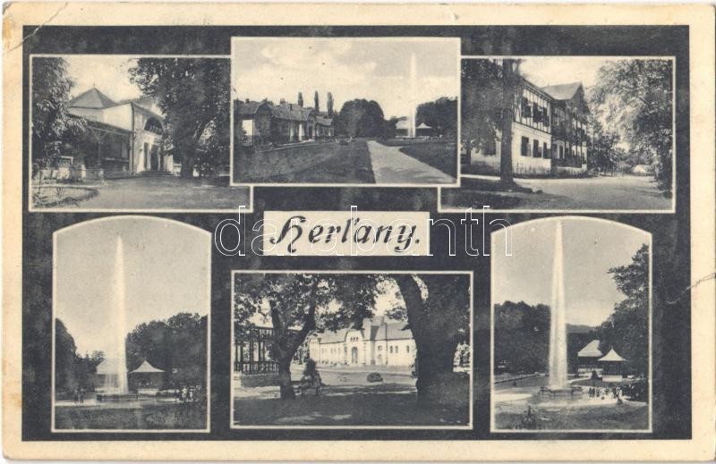 Ránkfüred, Ránkherlány, Herlany; herlányi gejzír, fürdő, nyaraló, szálloda. Emil Weisberg kiadása / Herliansky gejzír / geyser, spa, baths, villa, hotel (szakadás / tear)