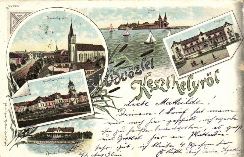 1897 Keszthely, Festetics palota, Hullám és Balaton szálloda, fürdő. M... https://www.darabanth.com/de/363-Fernauktion/363.0/Ansichtskarten/Ungarn~1500005/1897-Keszthely-Festetics-palota-Hullam-es-Balaton-szalloda-furdo-Merei-Ignac-Art-Nouveau-~II2065371