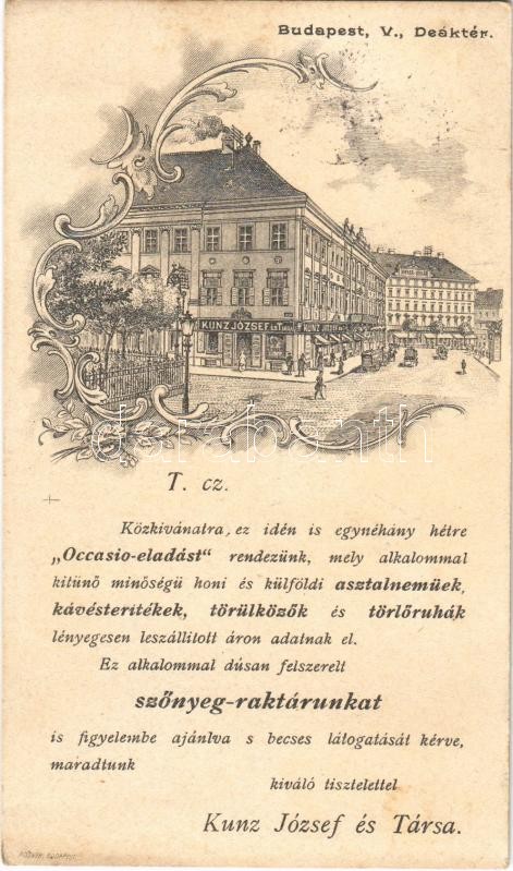 1897 (Vorläufer!) Budapest V. Kunz József és társa üzlete, reklámlap.... https://www.darabanth.com/de/363-Fernauktion/363.0/Ansichtskarten/Ungarn~1500005/1897-Vorlaufer-Budapest-V-Kunz-Jozsef-es-tarsa-uzlete-reklamlap-Deak-ter-Art-Nouveau~II2096386